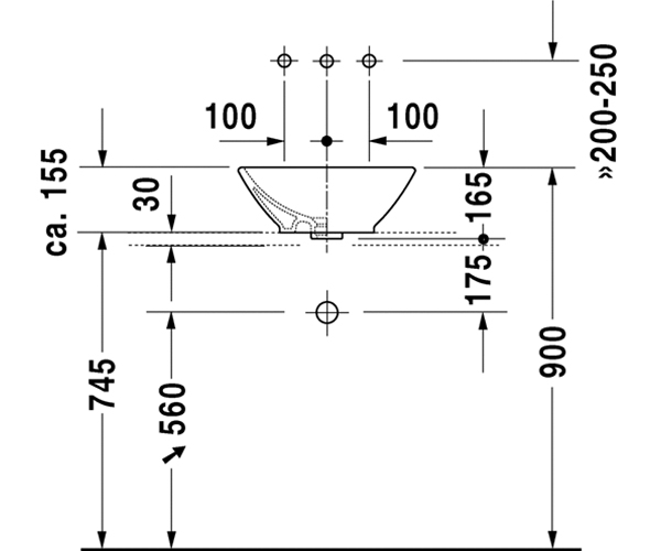 Starck 3 嵌入式脸盆0302560000 台上式脸盆, 有溢水口, 有安装龙头台, 560 ...